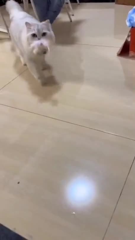 고양이는 사람에게 와서 놀라고 명령한다