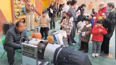 중국 푸젠성 거리 공연 중, 곡예사가 불타는 검을 들고 있다. 무엇을 할 수...