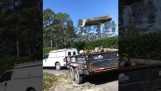 운전자가 전복 된 양동이에서 토양을 비우면 트럭이 뒤집 힙니다.. 그런 다음 운전자는 오두막에서 발사하여 폭력적으로 땅에 착륙합니다..