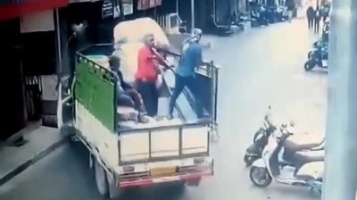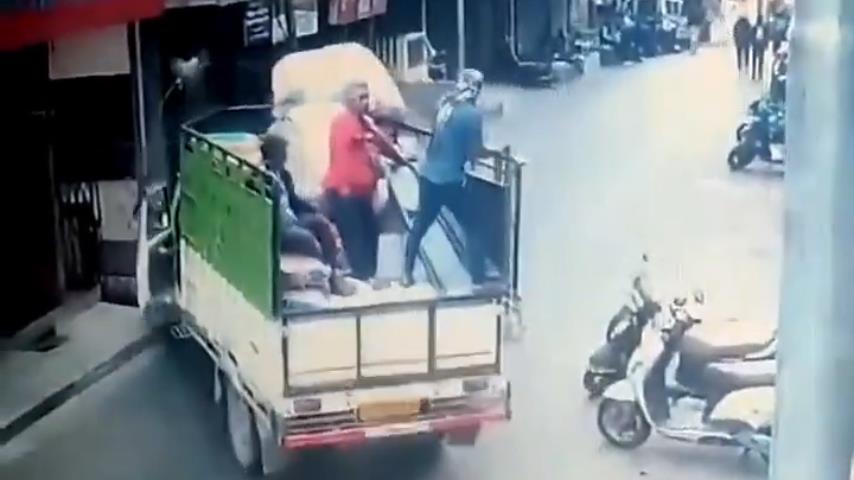 트럭에 3 명의 남자가 지하실로 위험한 하강에서 갑자기 발견되었습니다..