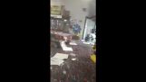 온타리오, 캐나다, 어머니는 아들과 함께 영화관에 갔다. 홀에는 혼돈이 우세했습니다, 아이들이 비명을 지르고 팝콘을 날아 다니면서 어디서나.