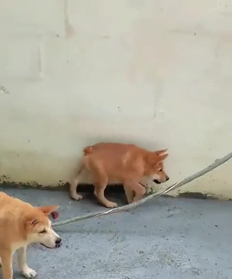 이 개는 선천성 척추 결함이 있습니다. 그들의 척추는 자라지 않았습니다, 그래서 그들은 이상하게 보입니다.