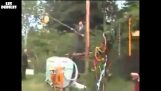 한 오토바이 대해 그의 오토바이 묘기 할 하려고으로 비참 하 게 실패.