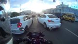 드라이버는 사고 오토바이의 원인, 갑자기 차선을 변경