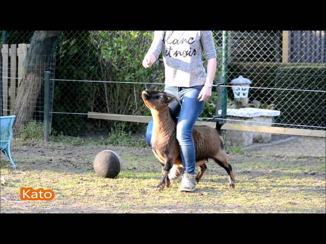 코타 Milca와 염소 카토, Roosje 및 Hulpgeit, 그들의 트레이너와 소유자 마리 Verbouw 인상적인 능력을 강조, 네덜란드에 있는 농장에서.