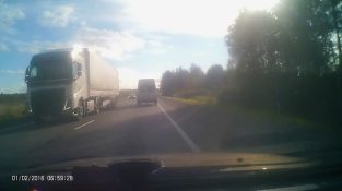 8월 13일, 2018 / 상트 페테르부르크, 러시아, 자고 있던 세단 운전자가 다가오는 차량을 향해 달려가 트럭을 들이받았습니다.. 나는 회피에 충돌 운이 좋았다. 모두 살아있다.