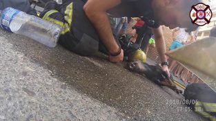 도시 코르도바 스페인 소방관은 집에서 화재를 진화 한 의식이 작은 개를 찾을 수. 심폐 소생술 후, 구조 개.