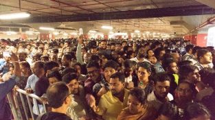 2018년 8월 9일: 이케아 매장을 입력 라인에서 기다리고 사람들의 큰 무리, 하이 데 라 바드, 인도에서 작업의 첫 번째 날.