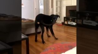 오랜 추적 후, 이 개는 결국 꼬리를 잡을 수있게되었다. 데 철저하게 입으로 먹이를 잡고, 이주의 깊게 있도록하는 것이 떠날 수 없습니다 전송.
