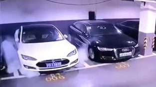 중국 상하이에서 공원에서 보안 카메라, 주차 된 전기 자동차 테슬라 모델 S가 갑자기 시작 연기와 불을 취할 기록. 사건 4 월 (22)와 원인에 무슨 일이 있었 [...]