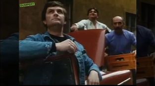 건물 나가야하는 동안 젊은 남자가 유리 파티션을 통해 노크. 그 웃음 사망 후 그의 친구, 그리고 노력하면 바보하고자하는 에뮬레이션.