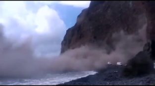 La Gomera의 절벽에서 펼쳐지는 멋진 산사태, 스페인