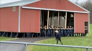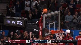 미국 인디애나주에서 열린 NCAA 농구 경기 중, 공이 바구니 상단에 붙었다. 공을 잡기 위해 인디애나 대학교 치어리더를 모집했습니다..