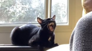 주인과 함께 기타를 치며 블루스를 부르는 고양이 Badu. 그의 손가락을 탭할 때마다 Badu는 야옹, 그러나 때로는 하품을 할 수 있습니다.