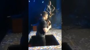 콘서트 중, 가수가 기계 플랫폼에서 무대에서 나옵니다.. 그러나 기계 장치의 결함은 그를 원래 있던 곳으로 되돌려 보낼 것입니다..