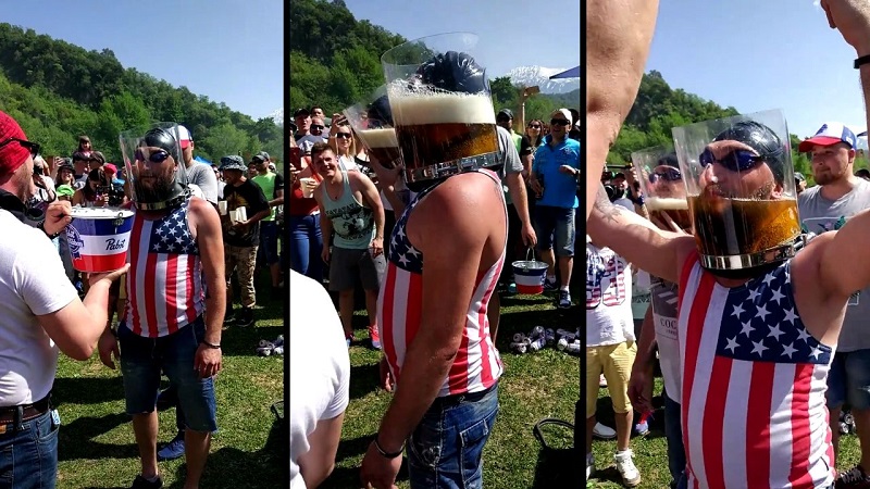 Vervolgens, emmer gevuld met bier. Beide deelnemers hebben hun kop in het bier, en kan niet ademen. Wie sneller drinkt en slaagde erin om zijn ogen te openen en te ademen eerste, Hij is de winnaar.