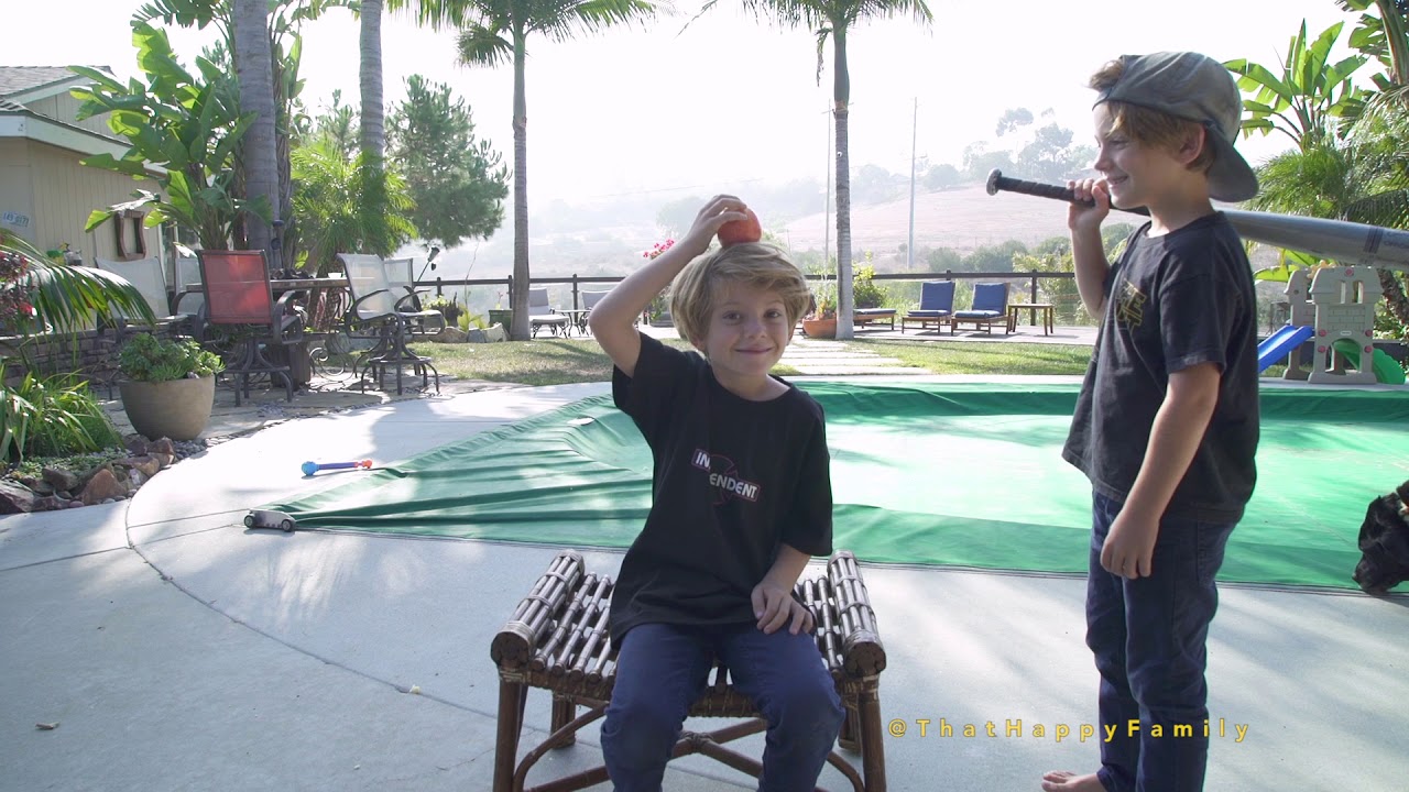 Twee broers spelen met een honkbalknuppel: een jongen zal op het hoofd van een appel te zetten, en de tweede zal proberen om het te raken met de knuppel. Maar het experiment zal niet slagen, en de vleermuis zal slaan met kracht het hoofd van de kleine jongen. Eigenlijk is het een montage, waarbij de twee broers is hetzelfde kind. Het is gemaakt door de gebruiker “That Happy Family” en je kunt het zien Hier hoe gefilmd.