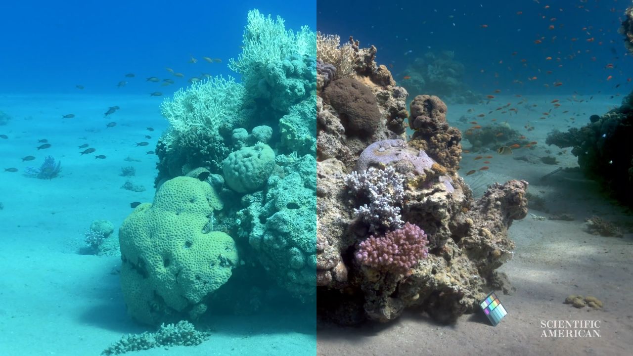 Onderwater foto's zijn blauw-groene uitstraling door de absorptie en verspreiding van het licht op het water. De onderzoeker en oceanograaf Derya Akkaynak heeft een algoritme om dit fenomeen te onderdrukken zodat de onderwater flora en fauna te herstellen van hun oorspronkelijke kleuren in foto's ontwikkeld. De Akkaynak legt uit dat dit geen eenvoudige beeldbewerking werk in Photoshop of Instagram filter.