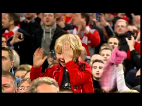 Een jong geitje fan van Liverpool viert Coco-Loco als ik per ongeluk aytotraymatizetai met het oog. Maar hij lijkt zich niet te laten afschrikken...