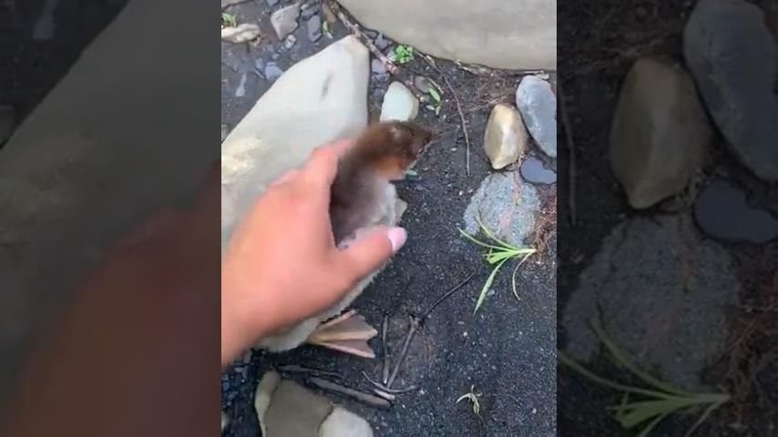 Een jonge heuvelman wordt door een man bij een rivier vrijgelaten, en begint met verbazingwekkende snelheid te zwemmen.