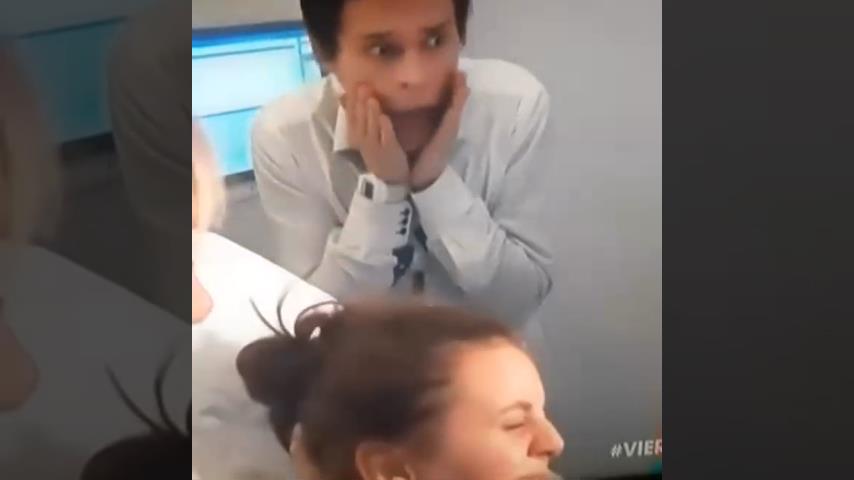 Geschrokken van het spektakel, een vader ziet zijn vrouw bevallen.