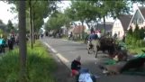 Good Samaritan scheelt een blind voor het voorbijgaan van een passerende trein