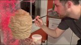 Een visagiste uit Berlijn, Duitsland gebruikte een latexmasker om het effect te creëren van een gepeld...