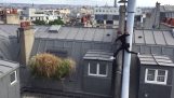Twee houtsneden nemen de snede van een grote boom over die de eigenaar van een huis ernaast stoorde. De 'experts' zijn erin geslaagd ....