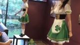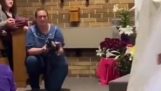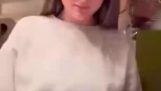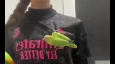 Meisje probeert een dansvideo te maken met haar parkiet.