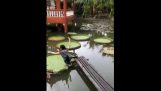 Een man wilde versnellen met zijn BMW X5 en een demonstratie maken in Drift. De zware auto raakte de stoeprand en brak zijn achterkant rechter wiel.