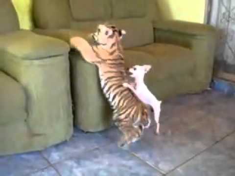 Een speelse Bengaalse tijger spelen met haar eigenaar Michael Jamison in Brakpan, Zuid-Afrika.