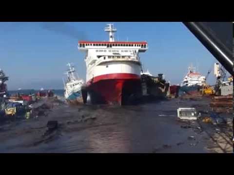 Een schip bestemd voor vernietiging, arriveert op een ongebruikelijke manier in de haven.