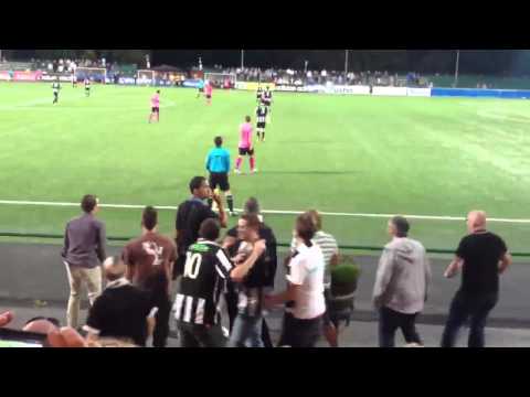 Een klein aantal van de fans van de Zweedse groep van Långholmen FC, stoppen met kijken naar de saaie spel en beginnen te gaan met de toezichthouder. Volg hem langs de toonhoogte en zijn elke beweging nabootsen, het aanbieden van een leuke Toon aan toeschouwers.