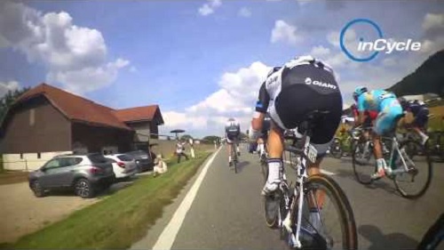 Opgenomen tijdens de vijfde etappe van de Tour de Suisse, Deze foto's tonen ons de hoge snelheid en intensiteit onder professionele wielrenners. Fietsers worden meestal uitgevoerd in groepen voor energiebesparing en het verminderen van luchtweerstand, maar in dit geval zien we een massasprint.