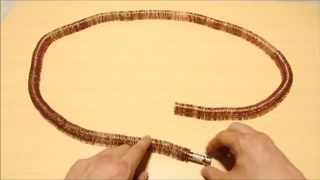 Met behulp van een batterij, 4 neodymium magneten en koperdraad, een Japanse gebouwd de eenvoudigste elektrische trein. Het werkingsprincipe is hetzelfde als die van een elektromotor.