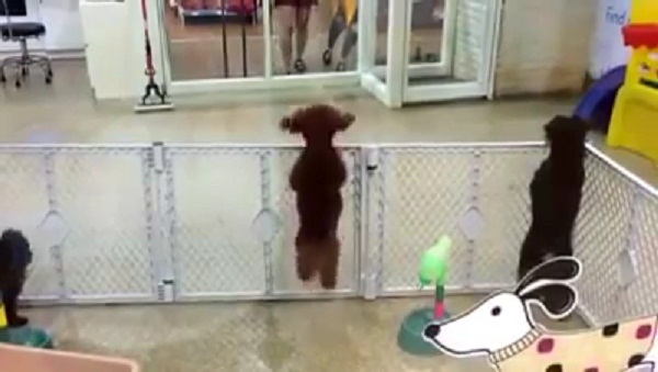 Een hondenras wekt de indruk dat poyntl dans, Als het stoeien op twee benen als hij zijn baas ziet.