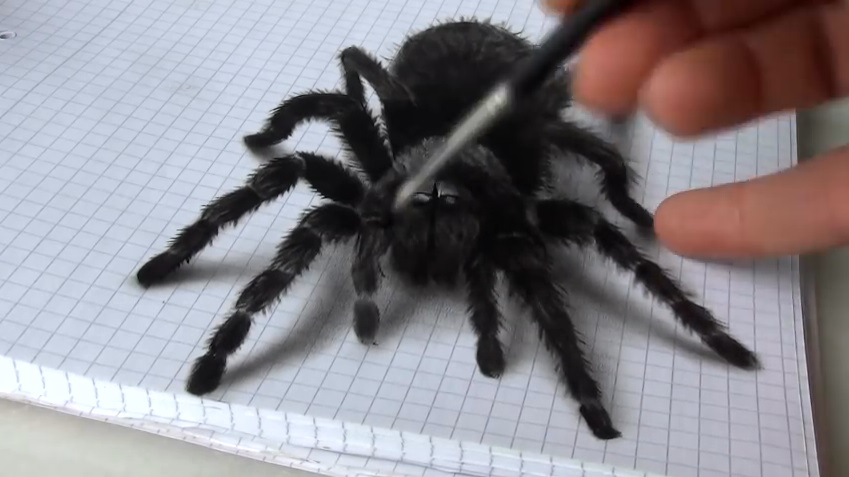De Duitse kunstenaar Stefan Pabst creëert een illusie anamorfiki, een grote Tarantula puttend uit één vel papier. Vervolgens zegt tegen zijn jonge dochter te benaderen het schilderij.