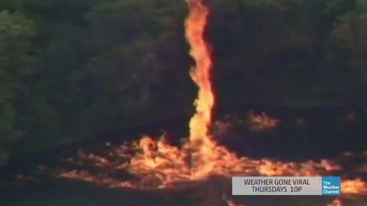 In de staat Kentucky in de Verenigde Staten, bliksem sloeg een magazijn met whisky Jim Beam, en de kostbare vloeistof (800.000 gallons of 3 miljoen liter) Het kwam in een kleine vijver. De wind tilde de vlammen tot wel 30 meter hoog, vorming van een onthutsend tornado van brand. Vele vissen gestorven na dit incident, Terwijl het bedrijf Jim Beam, betaalt ongeveer 27.000 dollars voor waterzuivering.