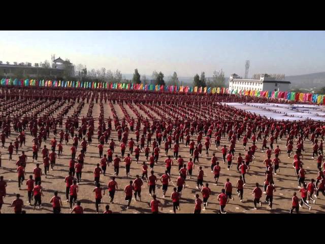 In Zhengzhou stad en in de buurt van de tempel van Shaolin, Er is de Tagou school, een van de grootste scholen van martial arts in China. Hier zien we ze in een repetitie voor de openingsceremonie van de Olympische Jeugdspelen 2014.