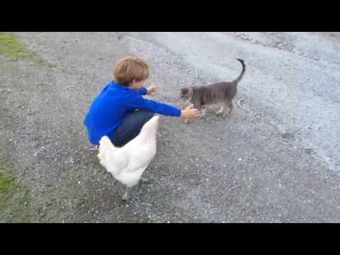 Robijn, de kat, probeert te sluipen een kleine knuffel van Mason. Love Bird aankondigingen en swoops in te redden van haar jongen uit de kitty liefdevolle. Ruby is schold en bladeren lege handen. Arme Kitty!!!