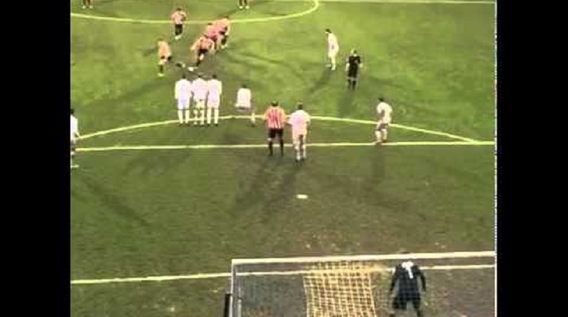 De spelers van het Nederlands team Cheltenham Town (5e categorie) proberen te maken iets elegante in het runnen van een fout. De onderneming ziet er indrukwekkend, maar het eindresultaat wordt veroorzaakt door gelach.