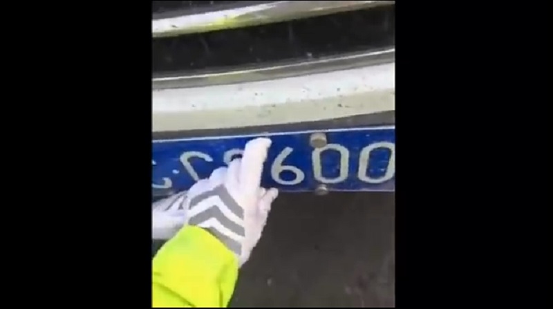 Chinese politieagenten stopte een auto en sommige nummers op wegwijzers bestond van magneten. Het nummer “6” kan worden verwijderd en overal op de kentekenplaat worden geplaatst.