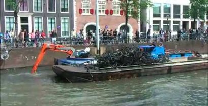 Amsterdam is een stad die bekend staat voor het gebruik van de fiets als een primaire middel van voortbewegen. Elk jaar tientallen fietsen worden ondergedompeld in de stad kanalen, en een drijvende kraan verwijdert de.