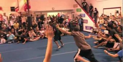 De Acrobat 22chronos, FreeRunner en Brandon McCuien cheerleader, imponeert met zijn onwaarschijnlijke almata.