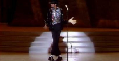 De Michael Jackson doen de Moonwalk dans karakteristiek figuur van live show, Als hij het lied zingt 'Billie Jean'. Pasadena, California 25 maart 1983.