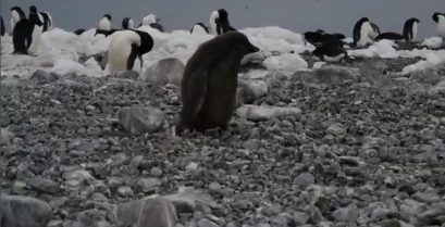 De pinguïn struikelt
