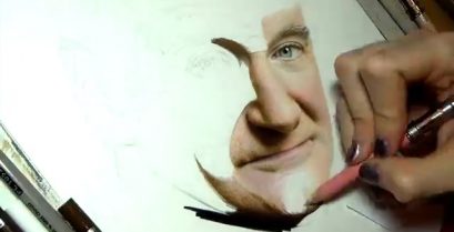 Ter ere van de dood van Robin Williams, de 20-jaar-oude kunst student Heather Rooney schetst een verrassend realistisch portret van, die blikken als foto.