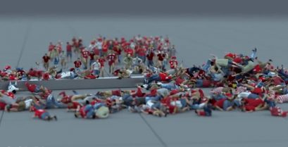 Test van menigtedynamiek met Miarmy voor Maya. Toont de nieuwe servokrachtfunctie waarmee worstelende animaties mogelijk zijn zodra de agent dynamisch is geworden. Weergegeven met Arnold