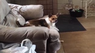 Een hond berekend niet correct springen, en crashes met forums op een bank.
