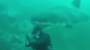 Dennis Ntemsei gemaakt duiken in de Zuid-Afrikaanse kust, wanneer een grote witte haai verschijnt plotseling en raakt zijn hoofd met zijn mond.